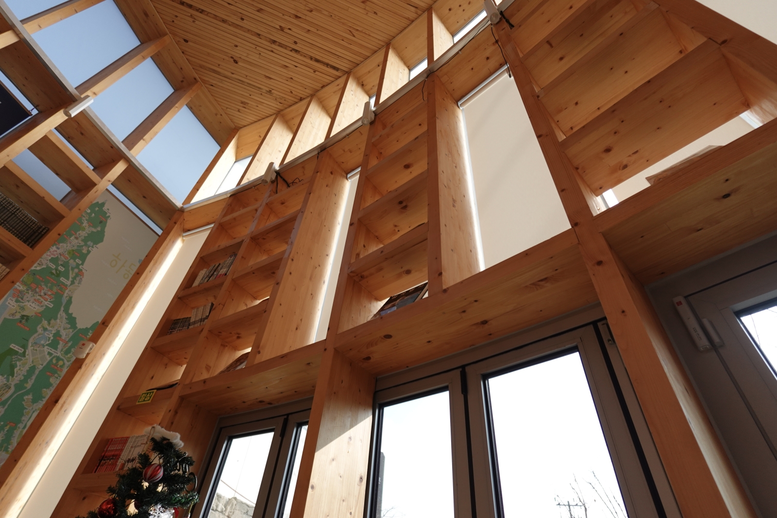 책장이 모두 목재로 짜여져 있어서